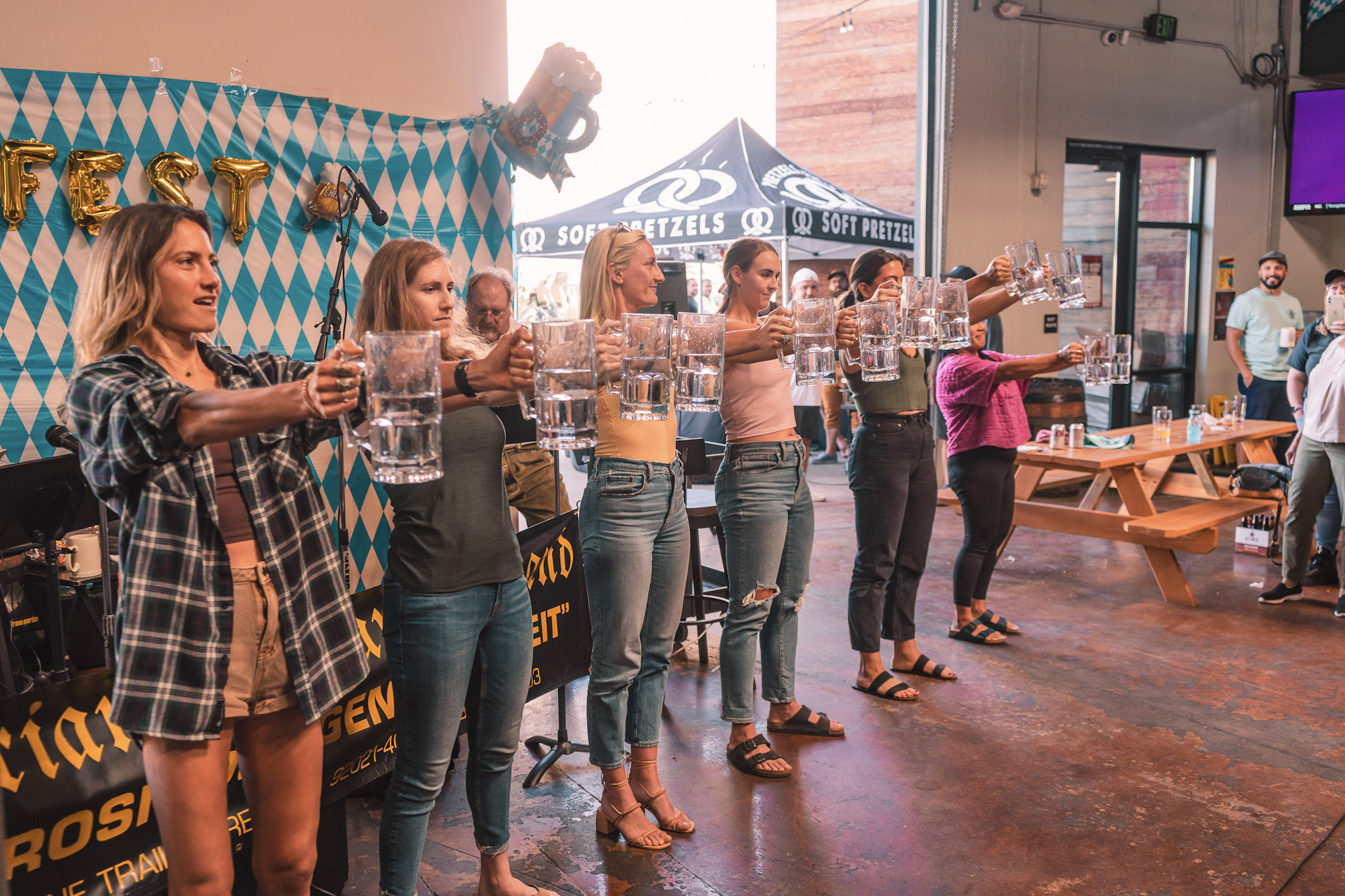 - German-Style Food: Delight in delicious offerings from the Biersal Food Truck, The Raclette Stand, and Pretzels and Pints, serving up German cuisine on our patio.