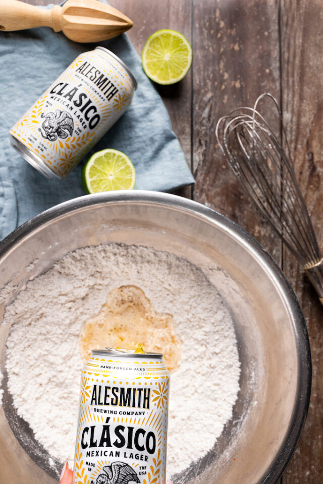 Mix before slowly whisking in the beer.