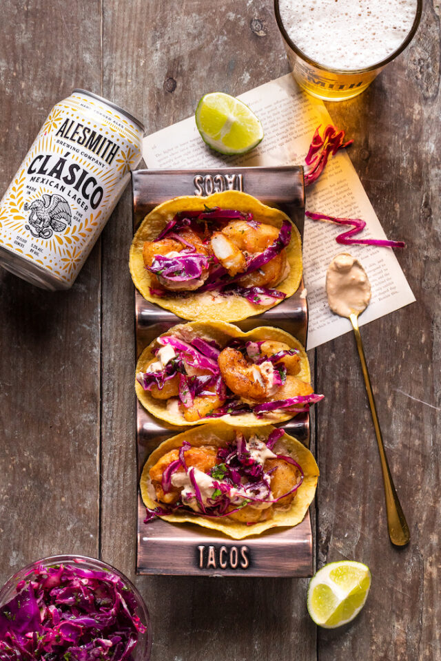 Looking for the perfect recipe for Taco Tuesday or Cinco de Mayo? These Beer Battered ShrimpTacos are flavorful, crispy and pair perfectly with our AleSmith Clásico!