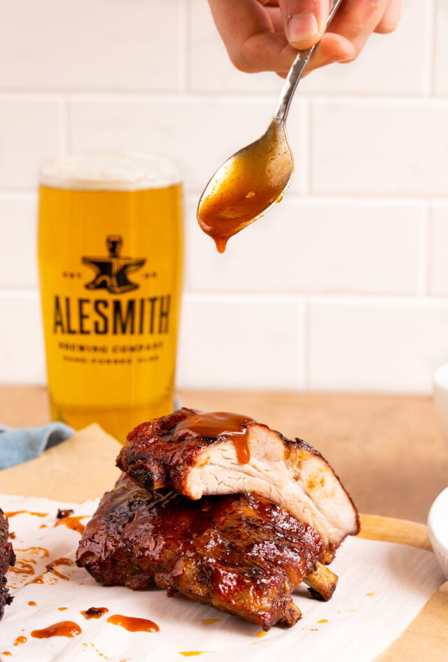 Beer Braised Ribs and Beer-BBQ Sauce with AleSmith San Diego State Ale